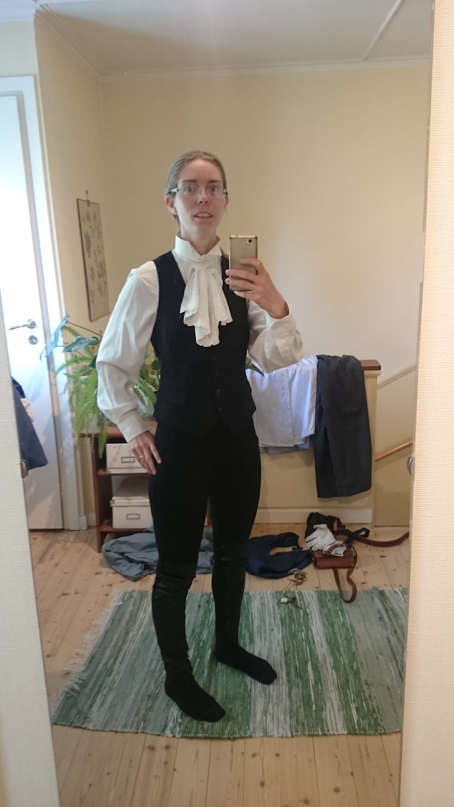 Under the coat, I wore a vest and shirt, and a Victorian-ish high
